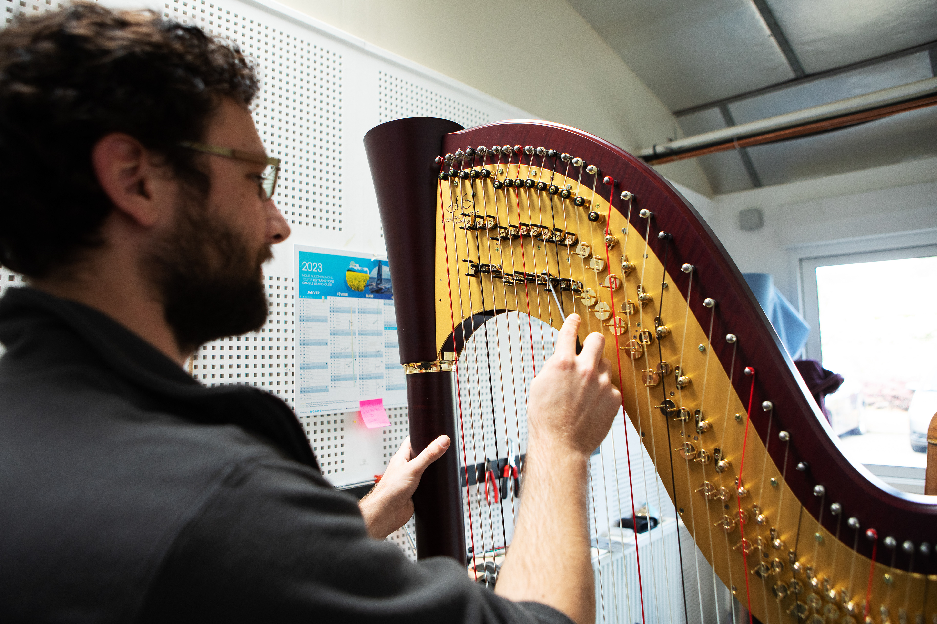 Harpes Camac is one of the last harp manufacturers in Europe. The company is facing major changes and now needs to build new facilities. Crafting a single harp can take up to twelve months, and the factory produces around a hundred each year. Photos for the music magazine Opus.