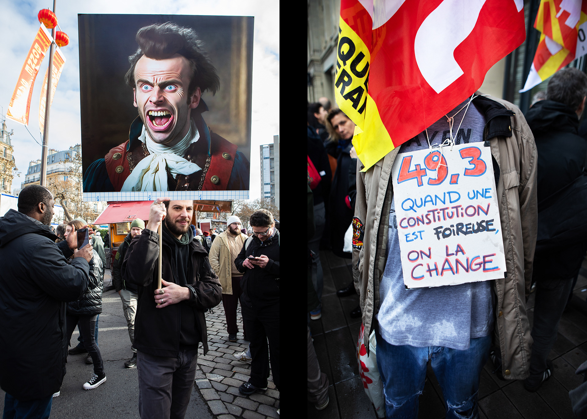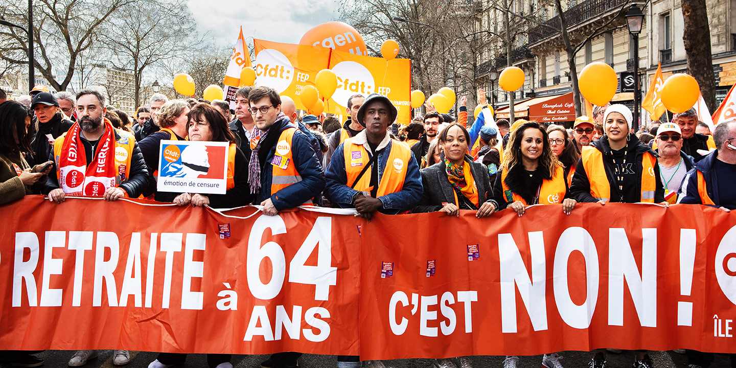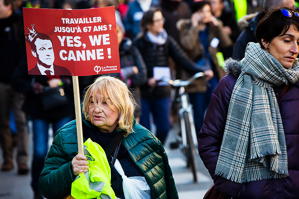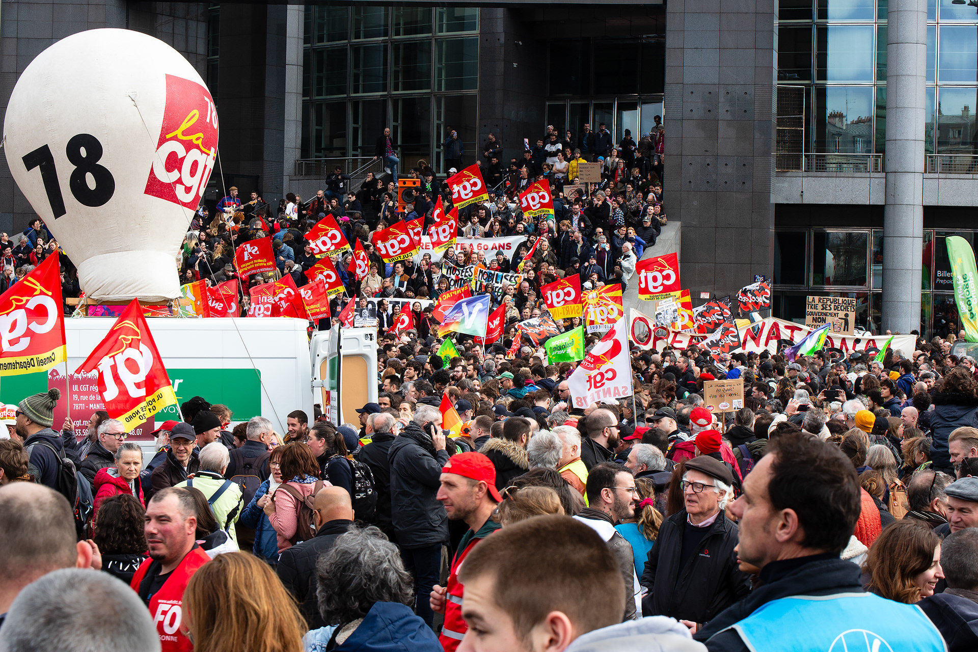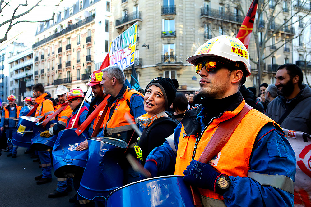 President Macron has pushed through a pension reform that raises the retirement age to 64. Back in December 2019, railway workers launched a 40-day strike in protest, followed by a wave of massive demonstrations. In March 2023, Paris saw what was likely the biggest protest since the turn of the millennium — but Macron still forced the reform through using a special clause in the constitution. I photographed the demonstrations for several newspapers. (These photos are from 2020–2023.)