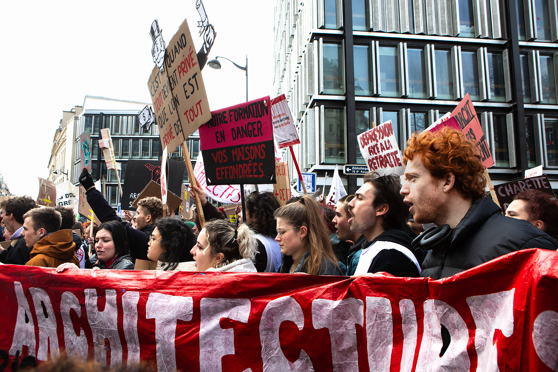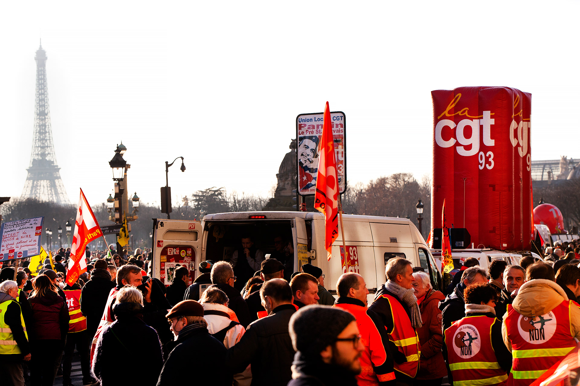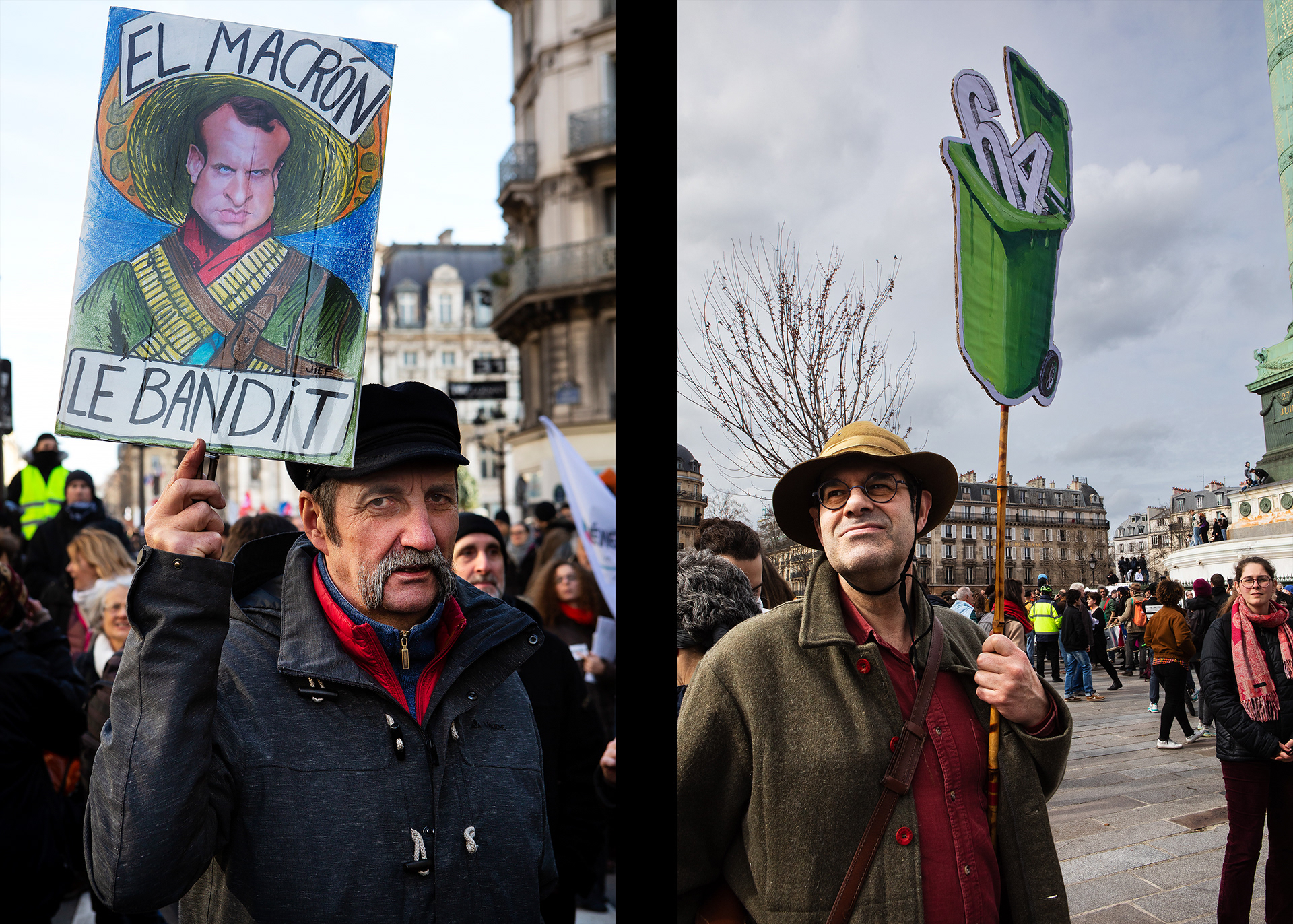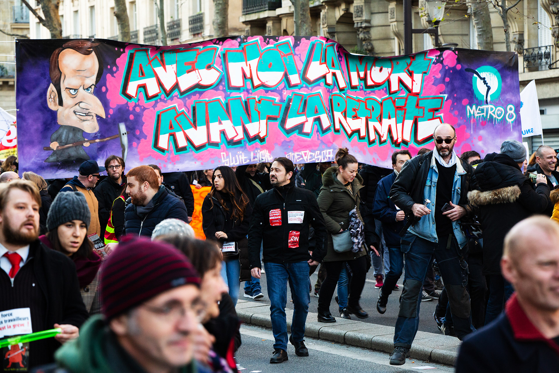 President Macron has pushed through a pension reform that raises the retirement age to 64. Back in December 2019, railway workers launched a 40-day strike in protest, followed by a wave of massive demonstrations. In March 2023, Paris saw what was likely the biggest protest since the turn of the millennium — but Macron still forced the reform through using a special clause in the constitution. I photographed the demonstrations for several newspapers. (These photos are from 2020–2023.)